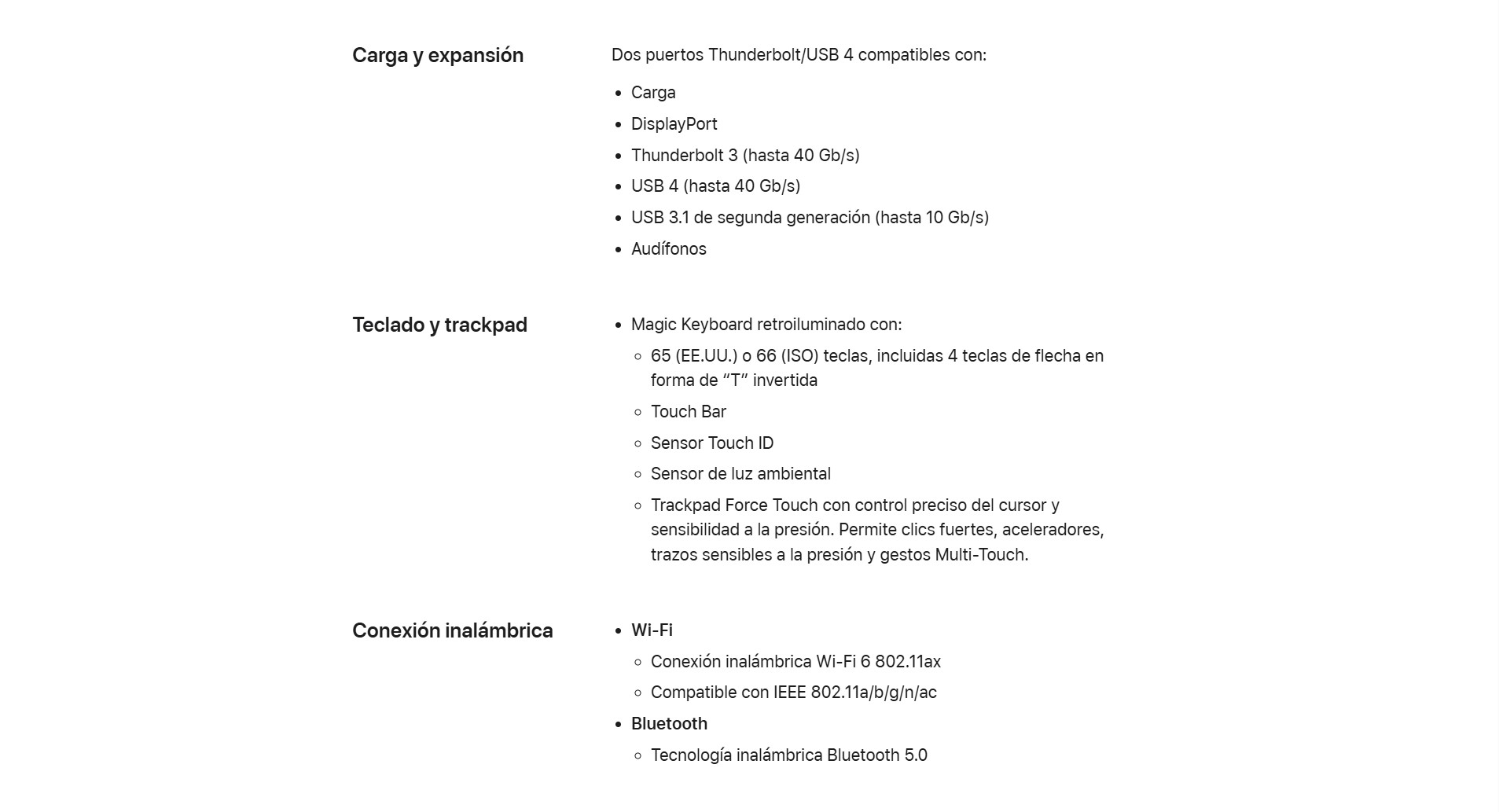 Touch Bar y Touch ID.